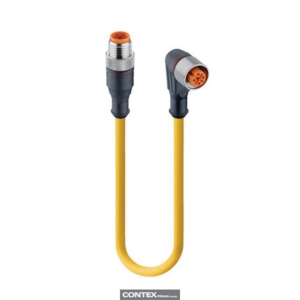 Sensor/Actuator Double-Ended Cordset: Male straight A-coded translucent 4-pin M12 Standard connector to female angled A-coded translucent 4-pin M12 Standard connector with 3xLEDs (PNP), 10-30 V DC, 4 A; PUR yellow cable, 4-wires, 0.34 mm²