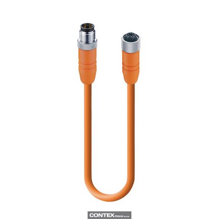 Sensor/Actuator Double-Ended Cordset: Male straight A-coded orange 4-pin M12 Standard connector to female straight A-coded orange 4-pin M12 Standard connector, shielded, 50 V AC / 60 V DC, 4 A; PVC orange cable, 4-wires, 0.34 mm²