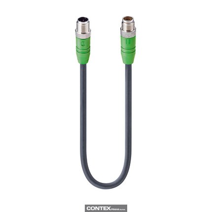 Fast Ethernet Cat5e Data Double-Ended Cordset: Male straight D-coded green M12 Standard to male straight Y-coded green M12 Hybrid, shielded, 50 V AC/ DC, 0.5 A; PUR black cable, 4-wires, 2x2x0.14 mm²