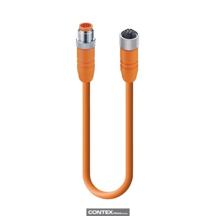 Sensor/Actuator Double-Ended Cordset: Male straight A-coded orange 8-pin M12 Standard connector to female straight A-coded orange 8-pin M12 Standard connector, shielded, 30 V AC/DC, 2 A; PVC orange cable, 8-wires, 0.25 mm²
