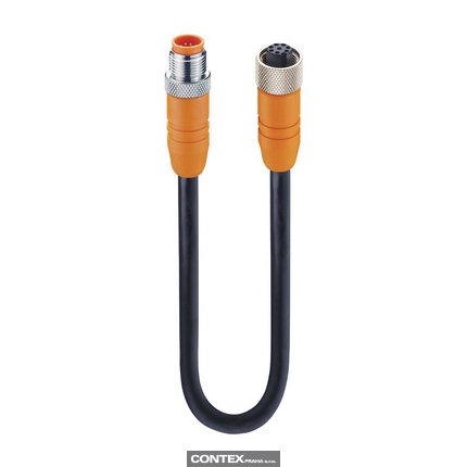 Sensor/Actuator Double-Ended Cordset: Male straight A-coded orange 8-pin M12 Standard connector to female straight A-coded orange 8-pin M12 Standard connector, shielded, 30 V AC/DC, 2 A; PUR black cable, 8-wires, 0.25 mm²