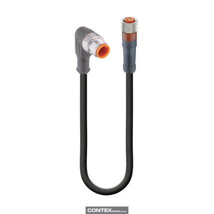 Sensor/Actuator Double-Ended Cordset: Male angled A-coded translucent 3-pin M12 Standard connector to female straight A-coded translucent 3-pin M8 Standard connector, 50 V AC / 60 V DC, 4 A; PUR black cable, 3-wires, 0.34 mm²