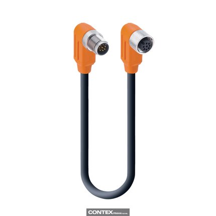 Sensor/Actuator Double-Ended Cordset: Male angled A-coded orange 8-pin M12 Standard connector to female angled A-coded orange 8-pin M12 Standard connector, shielded, 30 V AC/DC, 2 A; PUR black cable, 8-wires, 0.25 mm²