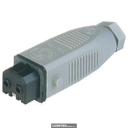 Rectangular Field Attachable Power Connector (ST Series): Female, straight with strain relief , 2-pin+PE, grey housing, 230 V AC/DC, 16 A AC/6 A DC