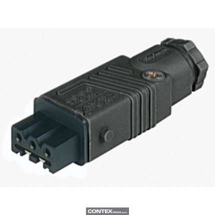 Rectangular Field Attachable Power Connector (ST Series): Female, straight with strain relief , 3-pin+PE, black housing, 400 V AC/230 V DC, 16 A AC/10 A DC