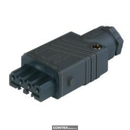 Rectangular Field Attachable Power Connector (ST Series): Female, straight with strain relief , 4-pin+PE, black housing, 400 V AC/230 V DC, 10 A