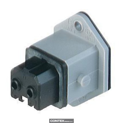 Rectangular Receptacle Power Connector (ST Series): Female, front mount with flange, 2-pin+PE, grey housing, 230 V AC/DC, 16 A AC/6 A DC