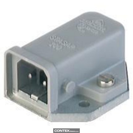 Rectangular Receptacle Power Connector (ST Series): Male, panel mount with coding slot, 2-pin+PE, grey housing, 230 V AC/DC, 16 A AC/6 A DC