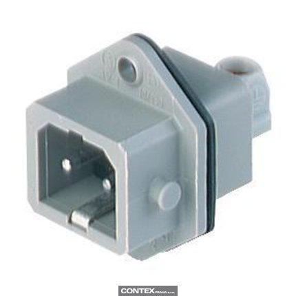 Rectangular Receptacle Power Connector (ST Series): Male, front mount with flange, 2-pin+PE, grey housing, 230 V AC/DC, 16 A AC/6 A DC