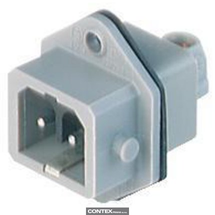 Rectangular Receptacle Power Connector (ST Series): Male, front mount with flange with coding slot, 2-pin+PE, grey housing, 230 V AC/DC, 16 A AC/6 A DC