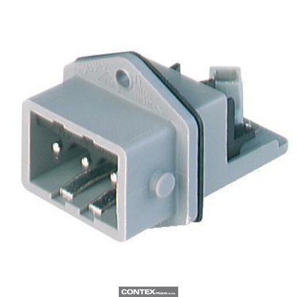 Rectangular Receptacle Power Connector (ST Series): Male, front mount with flange, 3-pin+PE, grey housing, 400 V AC / 230 V DC, 16 A AC/10 A DC