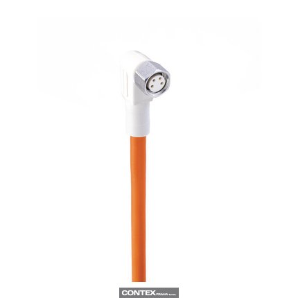 M8 F&B (Wash-Down) Sensor/Actuator Single-Ended Cordset: Female, angled, 4-pin, A-coded, white body, 30 V AC/DC, 4 A; TPE orange cable, 4-wires, 0.25 mm²