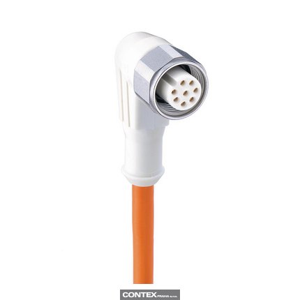 M12 F&B (Wash-Down) Sensor/Actuator Single-Ended Cordset: Female, angled, 8-pin, A-coded, white body, 30 V AC/DC, 2 A; TPE orange cable, 8-wires, 0.25 mm²