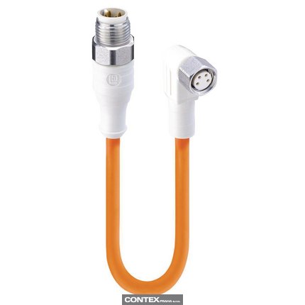 Sensor/Actuator Double-Ended Cordset: Male straight A-coded white 4-pin M12 F&B (Wash-Down) connector to female angled A-coded white 4-pin M8 F&B (Wash-Down) connector, 30 V AC/DC, 4 A; TPE orange cable, 4-wires, 0.25 mm²